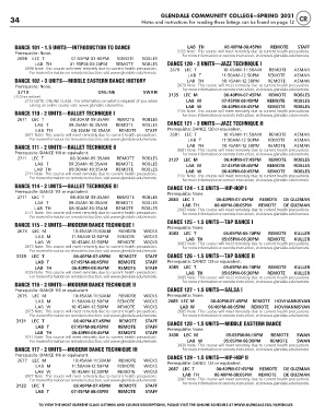 TO VIEW THE MOST CURRENT CLASS LISTINGS AND COURSE DESCRIPTIONS, PLEASE VISIT THE ONLINE SCHEDULE AT WWW.GLENDALE.EDU/SCHEDULES